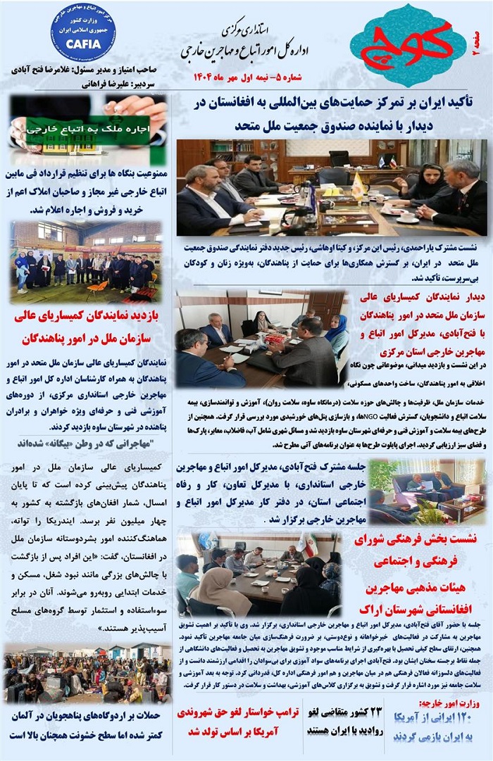پنجمین شماره نشریه کوچ، توسط دفتر امور اتباع و مهاجرین خارجی استان مرکزی منتشر گردید.